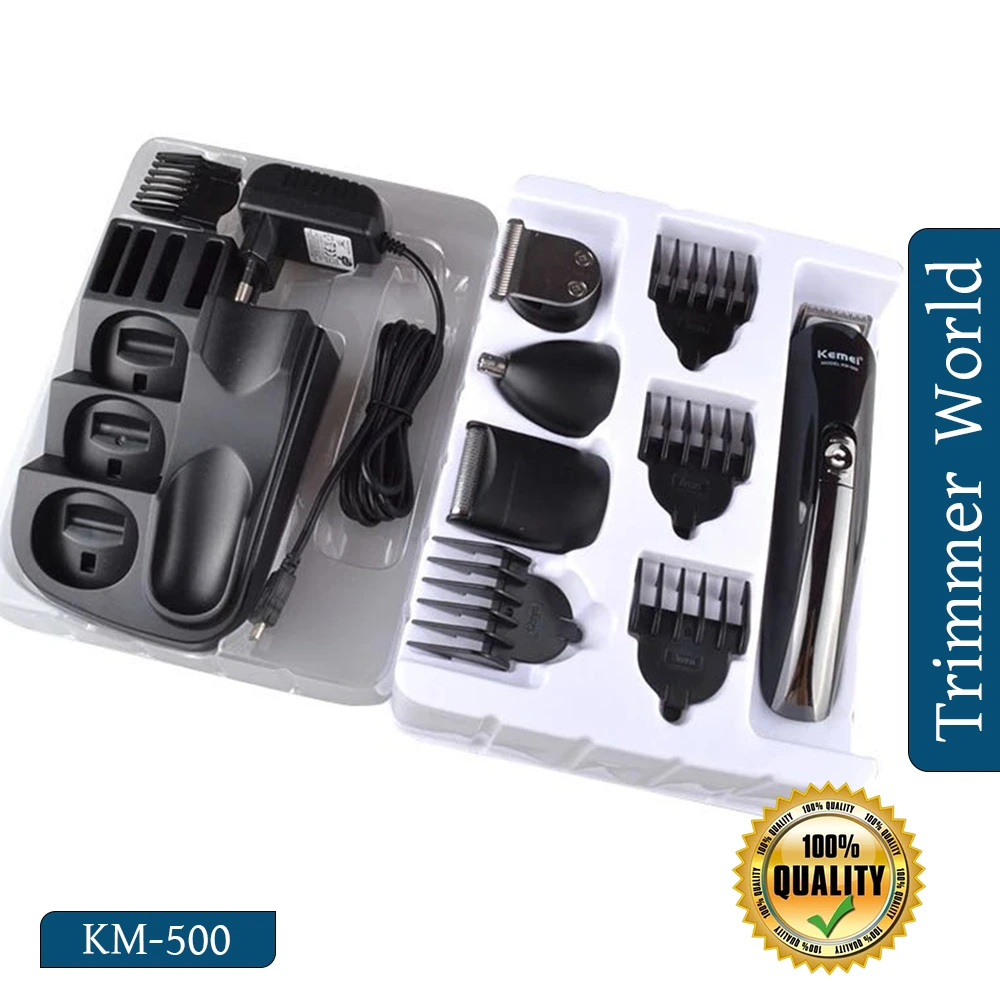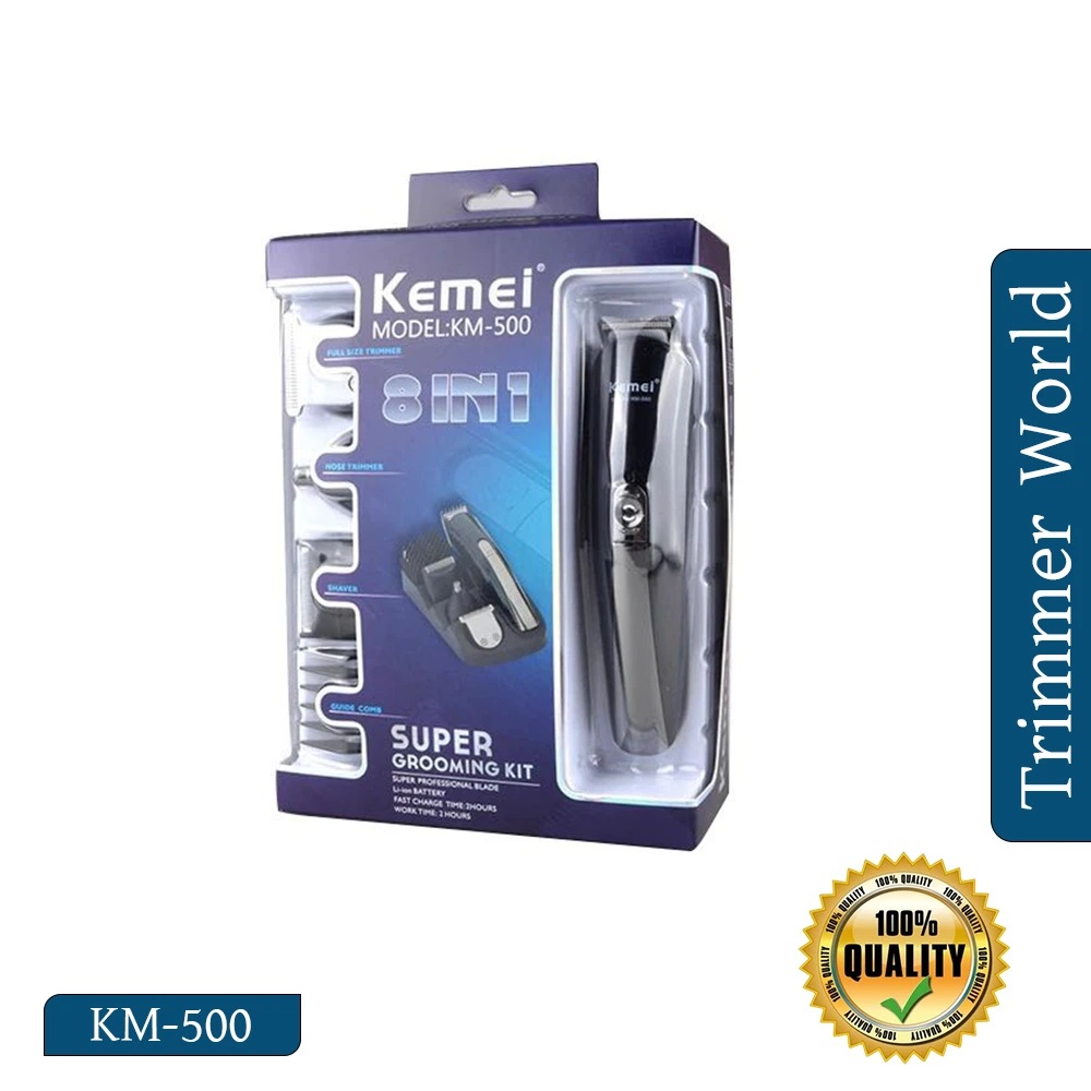The Kemei KM-500 is a complete grooming solution designed for men who want professional styling at home. Built with a high-speed motor and carbon steel blades, this 8-in-1 trimmer ensures precision, durability, and comfort in every use.
